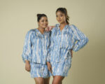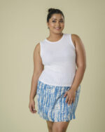 Be the first to review “Blue printed fake wrap around short skirt” Cancel reply