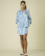 100% Rayon Fabric with a touch of satin. Very light and flowy fabric. oversize comfortable Blouse with Ranglan Sleeve and button front.
