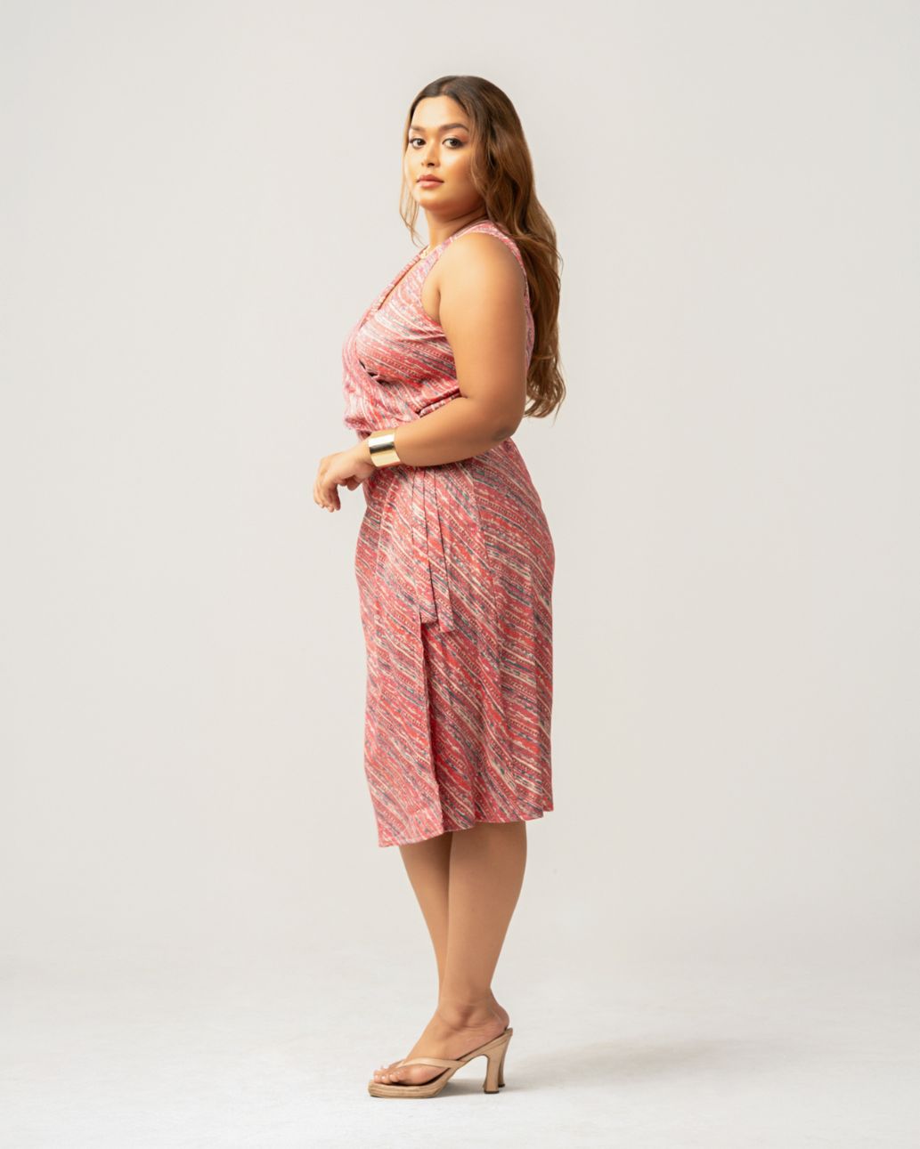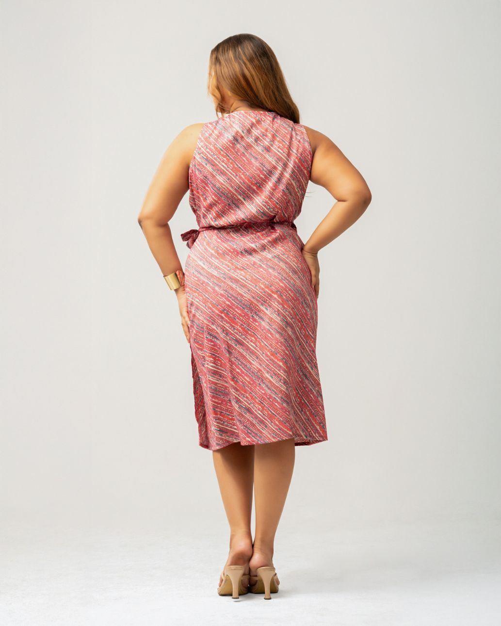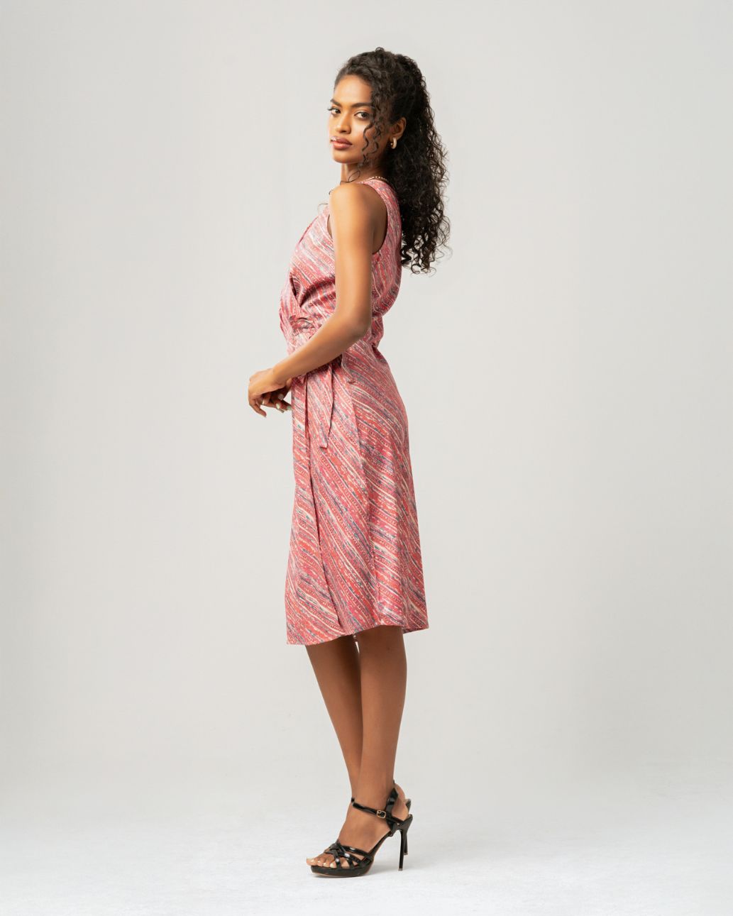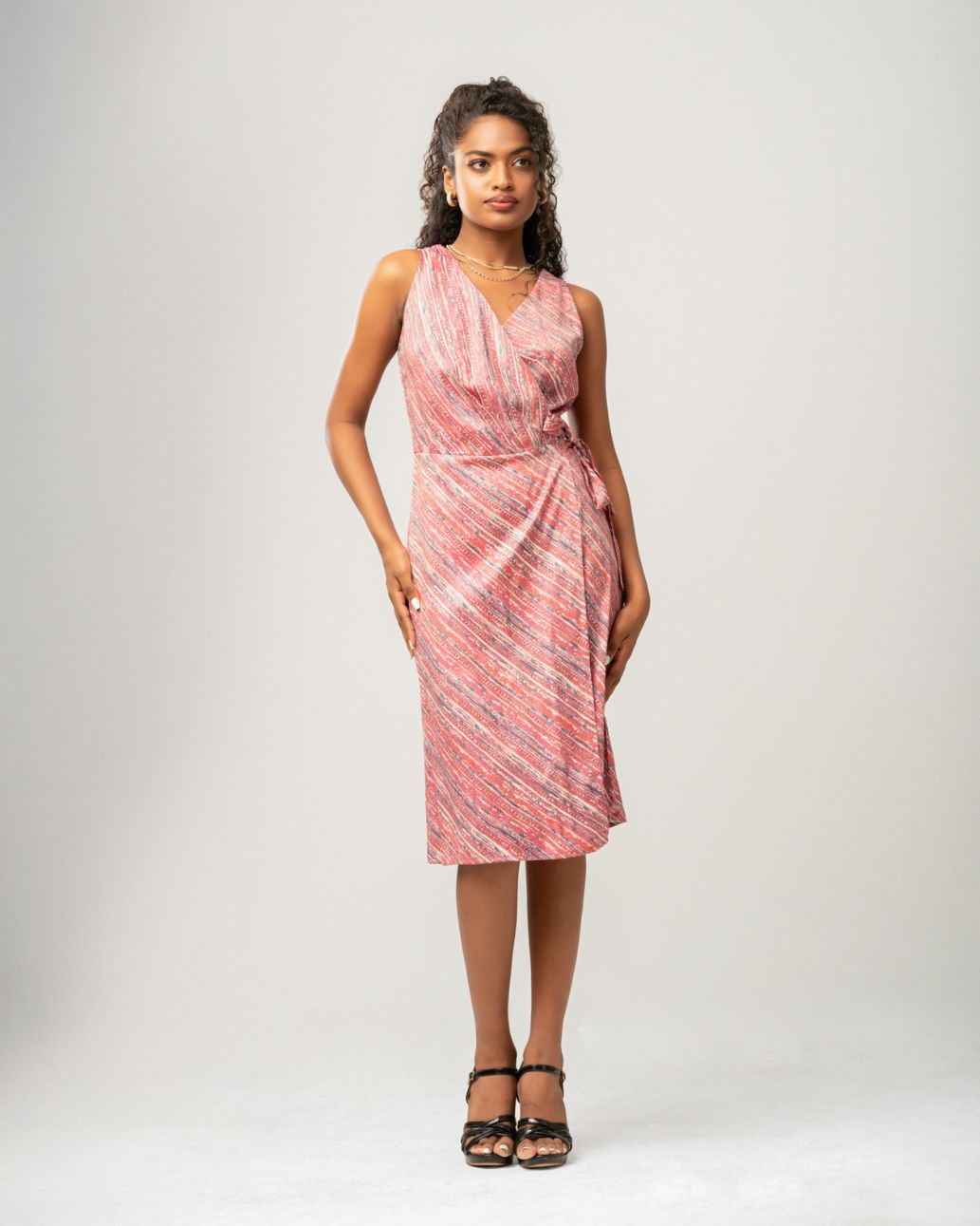Sleeveless wrap dresses: The V-neckline and tie-waist design